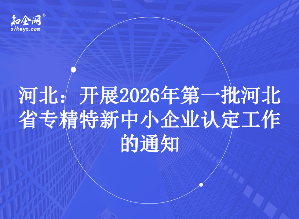 河北:开展2026年第一批河北省专精特新中小企业认定工作的通知